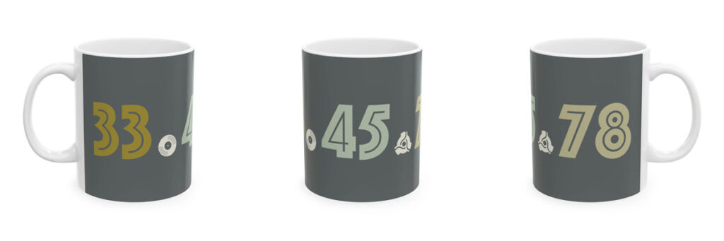 This subtle text design showcases three numbers all record collectors will know very well. 33, 45, and 78 RPM. Perfect for hot chocolate with your choice of cozy winter record.